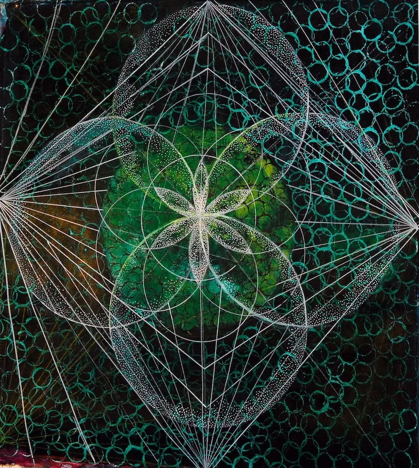 A study in balance, structure, and flow, this series blends sacred geometry with intuitive movement. Straight lines offer contrast to the organic forms, adding clarity and focus, while layered shapes echo the rhythms of the natural world. The repetition within each piece offers a meditative quality, creating space for grounding, focus, and calm. Each painting invites you inward to reconnect with your center through color, form, and energetic symmetry.